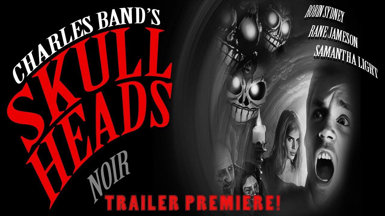 Last year, Charles Band’s company Full Moon announced that they were launching a new production label called Pulp Noir, which would focus on “edgier, weirder, darker horror and dark fantasy films.” Two Pulp Noir movies, Quadrant and Death Streamer, have since made their way through production – and while those movies were initially released in color, all of the Pulp Noir movies will also get black & white “noir” releases, so there are both color and black & white versions of Quadrant and Death Streamer available on the Full Moon Features streaming service. While we wait for more Pulp Noir movies to be made, Band has started going through the Full Moon library to give some of their older films the black & white / noir treatment. This noir series, which is expected to consist of at least a dozen films, got started with a black & white version of the 1984 sci-fi thriller Christmas classic Trancers. That has been followed by “noir” releases of the 1997 creature feature The Creeps, the 2007 movie The Haunted Casino, a.k.a. Dead Man’s Hand, the 2012 “insane comedy chiller” The Dead Want Women, and the 2004 sci-fi horror film Dr. Moreau’s House of Pain. Now available to watch on Full Moon Features and YouTube is Skull Heads Noir, a black & white version of a 2009 horror film that was directed by Band. The trailer is embedded above and the full movie can be viewed on YouTube.