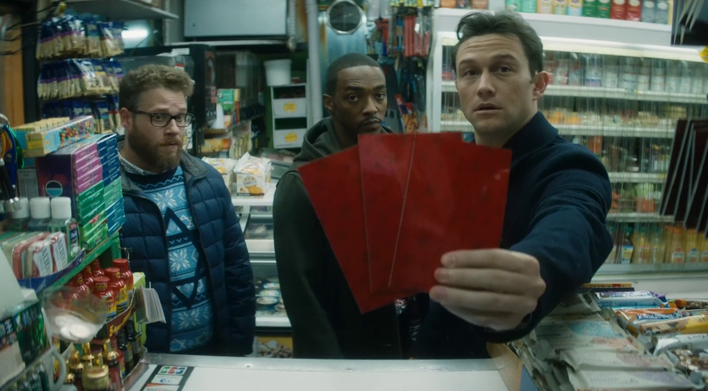 Joseph Gordon Levitt plays Ethan, Seth Rogan plays Isaac, Anthony Mackie plays Chris.